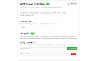 Google Tag Manager Internal Traffic Filter är en kostnadsfri webbläsartillägg för Chrome som syftar till att förbättra datakvaliteten i Google Tag Manager och Google Analytics 4. Genom att automatiskt markera intern trafik, såsom besök från staging-sidor eller interna domäner, förhindrar den att dessa data förorenar din webbanalys. Användare kan enkelt konfigurera interna värdnamn, inklusive stöd för wildcard, vilket ger flexibilitet i hanteringen av trafik.